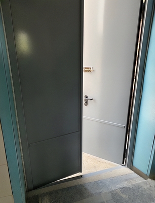 Стальные ворота EI 60 укомплектованы негорючей теплоизоляцией в полотне и коробе, уплотнителями специального назначения по периметру створок и жаропрочным замком с ручкой.