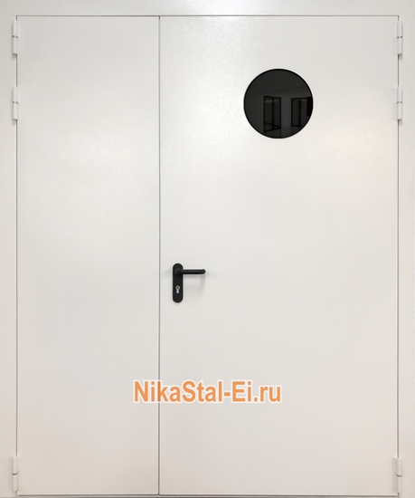 Двупольная противопожарная дверь eis-60 из оцинкованной стали с круглым остеклением Арт53