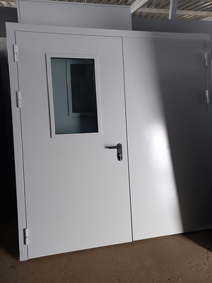 Установка двустворчатых противопожарных дверей со стеклопакетами